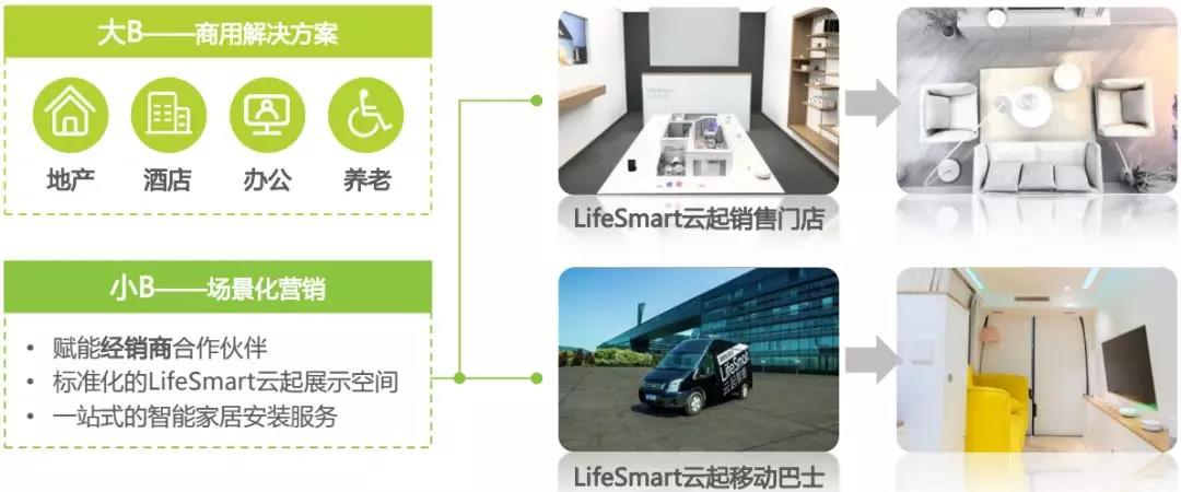 LifeSmart云起的全屋智能解決方案主要面向高端用戶群體,通過B端的線下渠道銷售給最終用戶。一方面,LifeSmart云起與房地產(chǎn)、酒店、養(yǎng)老等行業(yè)客戶達成戰(zhàn)略合作,采用項目制的方式落地商用解決方案。同碧桂園聯(lián)手打造的馬來西亞森林城市智能豪宅、為阿里巴巴定制的智能會議系統(tǒng)等都是其中的標桿案例。另一方面,LifeSmart云起基于眾多中小經(jīng)銷商客戶,構(gòu)建起穩(wěn)固的銷售渠道。通過向經(jīng)銷商輸出標準化的展示空間和服務體系,可以由智能機器人完成LifeSmart云起樣板間內(nèi)的產(chǎn)品介紹和演示。依靠可視化的智能家居體驗與一站式的安裝服務,LifeSmart云起不僅可以觸達到廣泛的終端消費者,更能夠有效實現(xiàn)用戶流量的轉(zhuǎn)化。