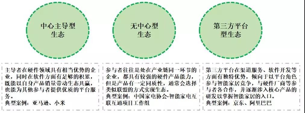 智能家居行業(yè)涉及面非常廣泛,各垂直細分領域之間壁壘高,完整的智能家居生態(tài)不是某個或某幾個獨立的智能單品所能代表的。行業(yè)本身的特性意味著一家獨大的情形難以出現(xiàn),勢必要跨界融合,將不同環(huán)節(jié)和細分領域的參與者囊括進來。盡管越來越多的企業(yè)開始秉承著開放的心態(tài)達成合作,但對于生態(tài)的具體形態(tài)、每個參與者的位置和利益分配的方式尚無定論。通常,在行業(yè)內(nèi)有一定領先優(yōu)勢的頭部企業(yè),大多希望憑借既有優(yōu)勢主導生態(tài)的形成和發(fā)展,而中小企業(yè)和創(chuàng)業(yè)公司則更傾向于選擇加入已有的生態(tài),利用生態(tài)內(nèi)的資源發(fā)揮自我價值。